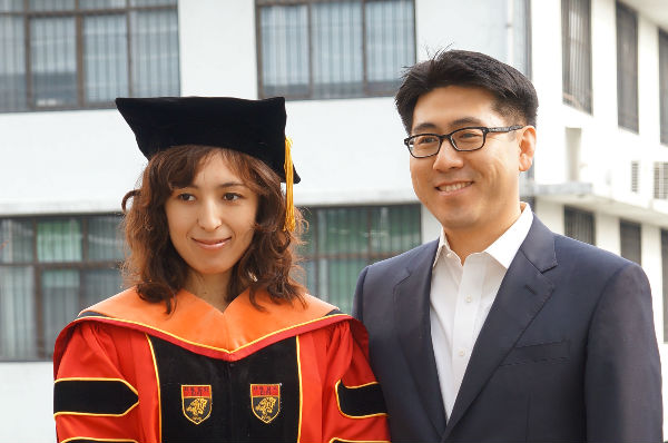 Tuerhong Gulanbaier 박사 과정 졸업 학생과 김성범 교수님. 교수님의 인자한 미소:)