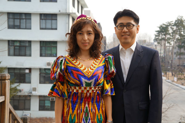 Tuerhong Gulanbaier 박사 과정 졸업 학생, 전통의상을 입고 교수님과 한 컷,