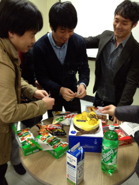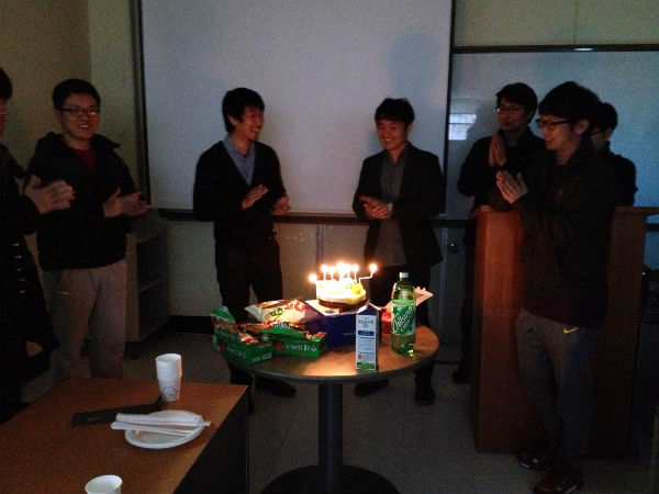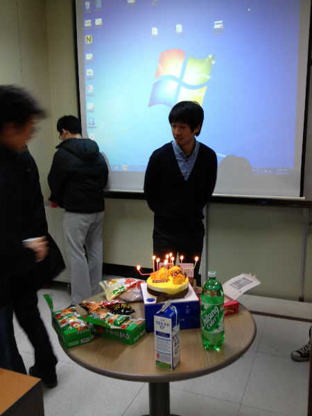금요일(3월 29일) 세미나가 전 교수님과 연구원들이 모여 조촐한 생일 파티를 갖었습니다.