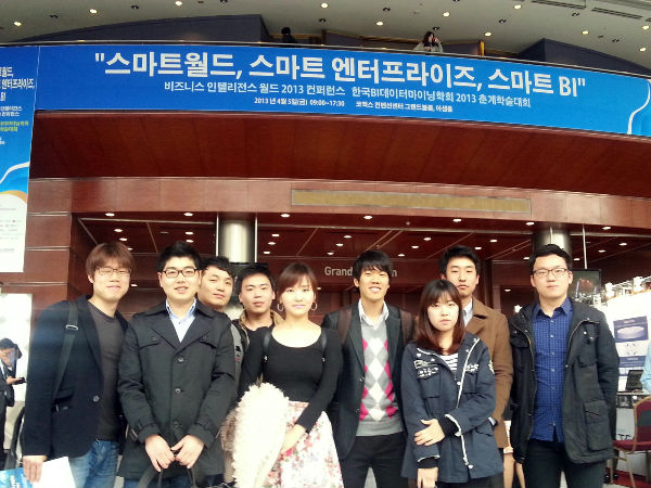 김성범 교수님과 DMQM 연구생 전원이 지난 4월 5일에 있었던 한국BI데이터마이닝학회 2013 춘계학술대회에 참석했습니다.