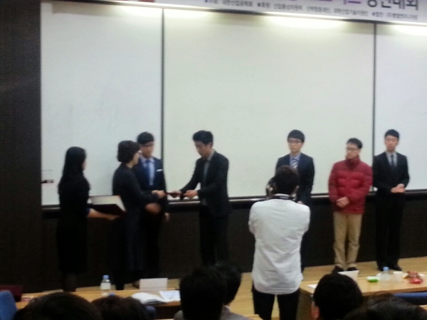 김성범 교수님 지도하에 강지훈, 주태우, 이한규, 이슬기(고려대학교 산업경영공학과) 연구원과 제일모직의 오시연 상무님이 참가하여 우수 산학협력프로젝트상을 수상했습니다. 이로써 우리 연구실은 2011년 처음 참가한 이래 3년 연속 수상을 하는 기록을 세우고 있습니다.